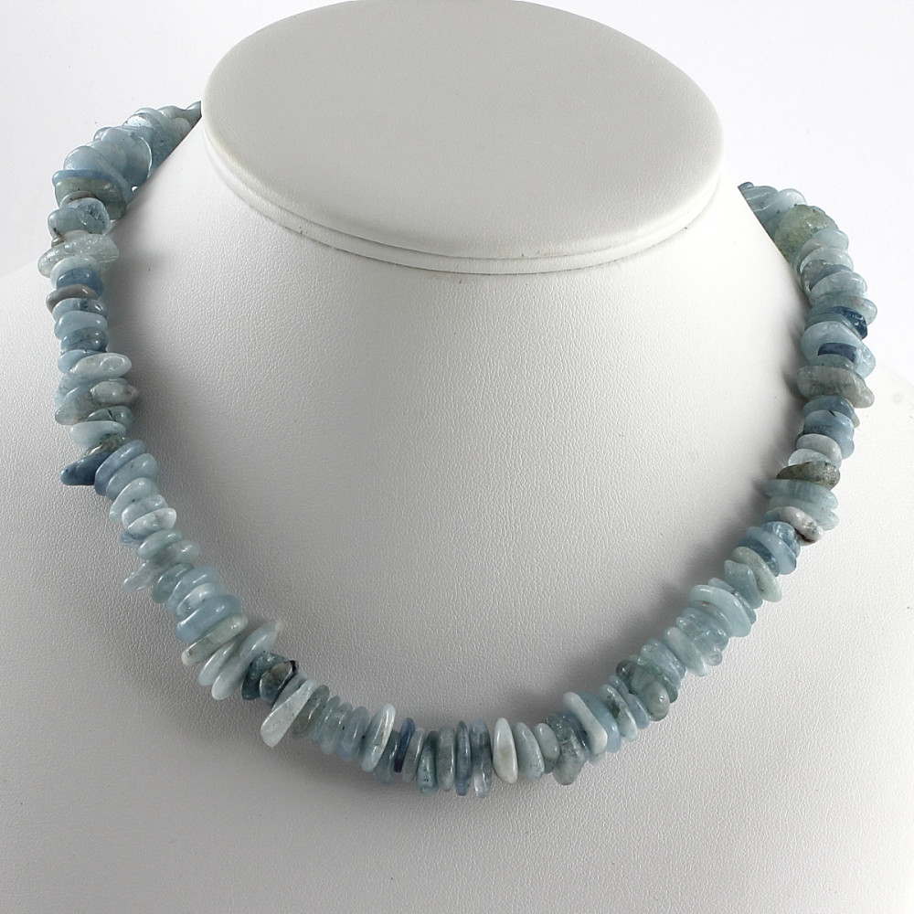 Nyaklánc akvamarin lapos kavicsokból, óriás golyó mágneszárral