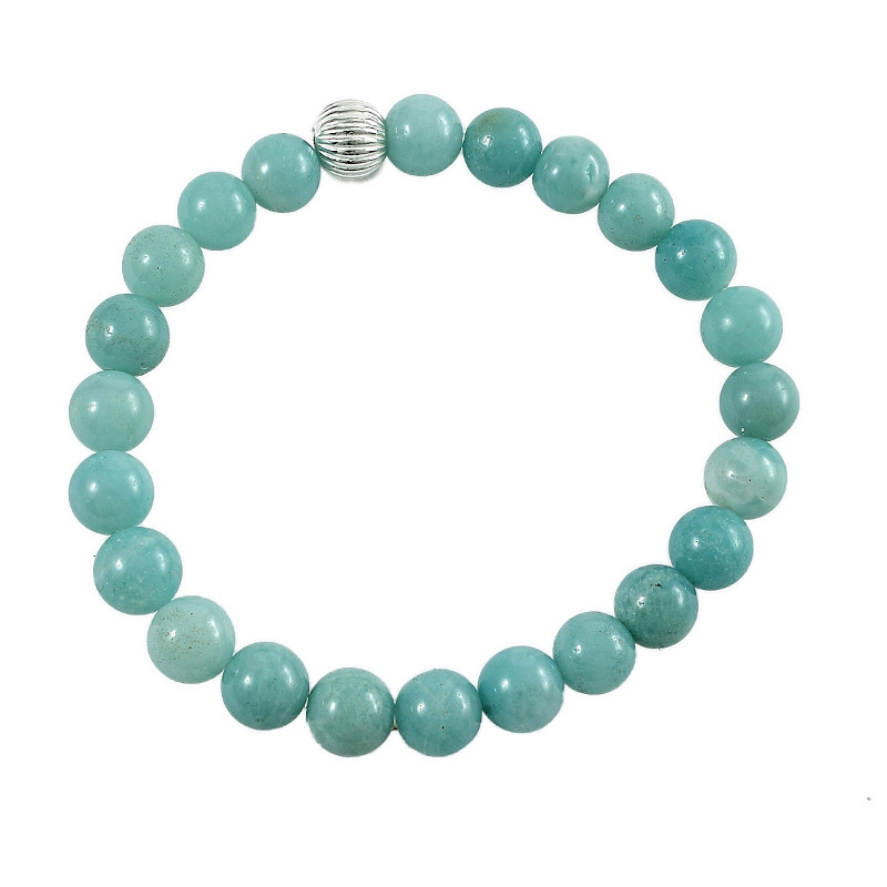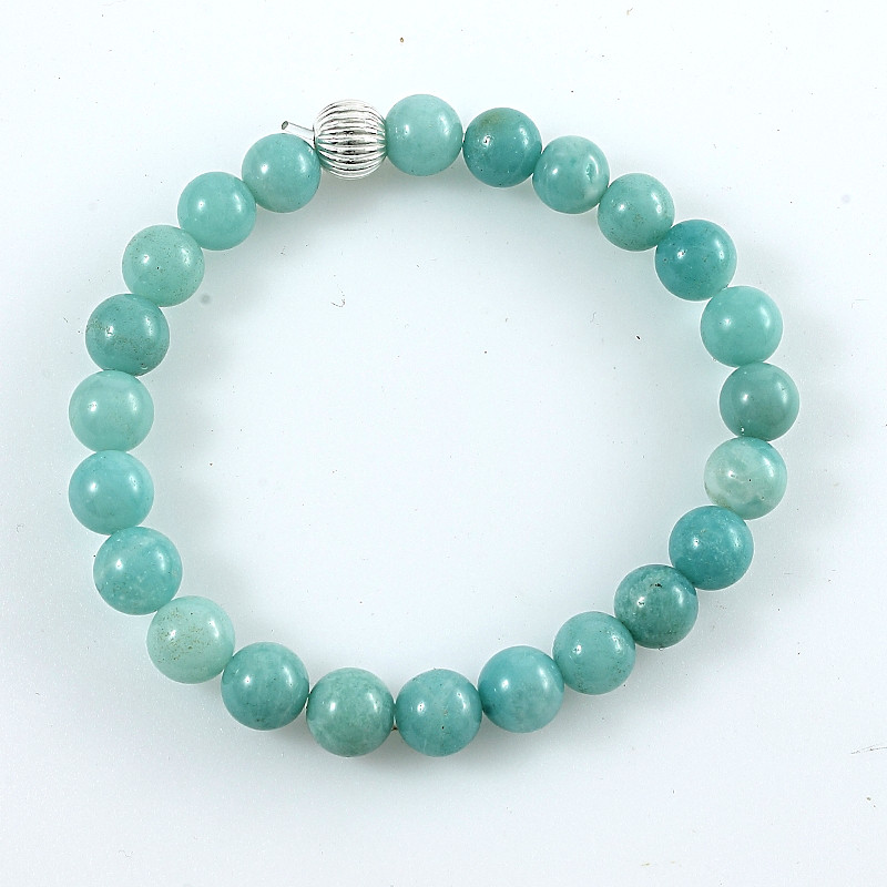 Amazonit - értelem+intuíció - 8mm golyókból gumis karkötő dísszel, melynek hossza 19,5cm