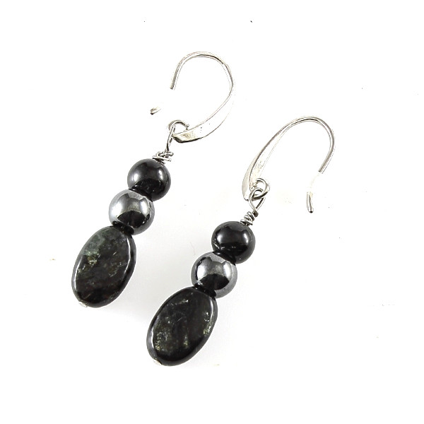 Astrophylit, onix, hematit fülbevaló ródiumozott beakasztó horoggal
