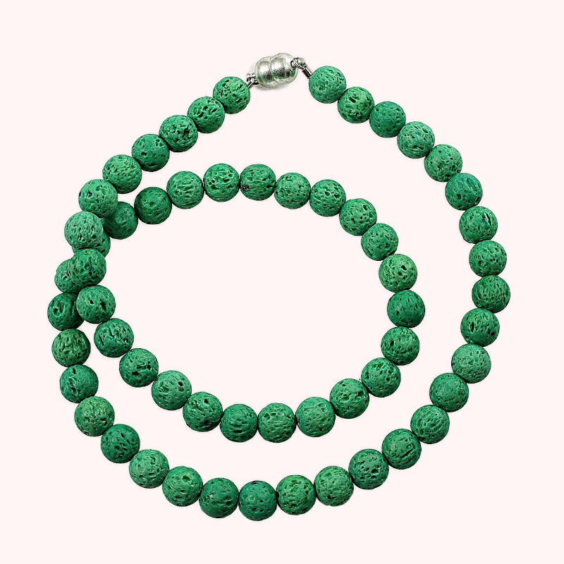Zöldre színezett bazalt nyaklánc mágneszárral