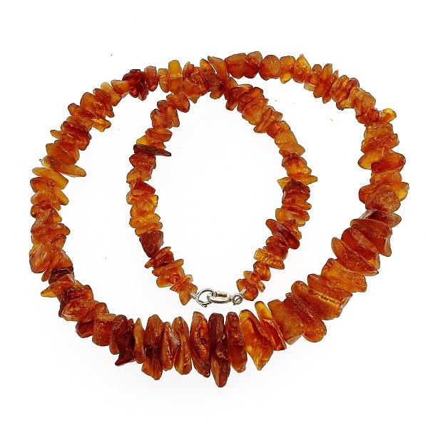 Sötét, matt borostyán nyaklánc növekvő méretű szilánkokból, zárral