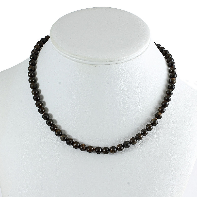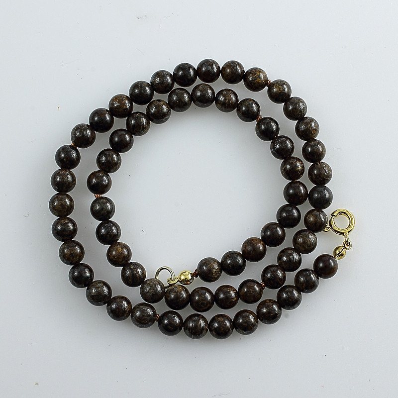 Bronzit (6mm) golyókból készült nyaklánc, aranyozott rugós zárral ellátva, hossza: 43,5cm