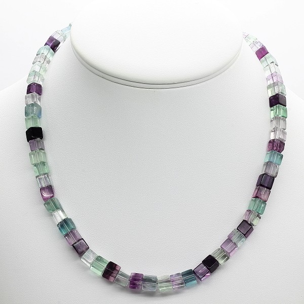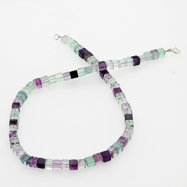Nyaklánc 6x6 mm-es színes fluorit kockákból zárral