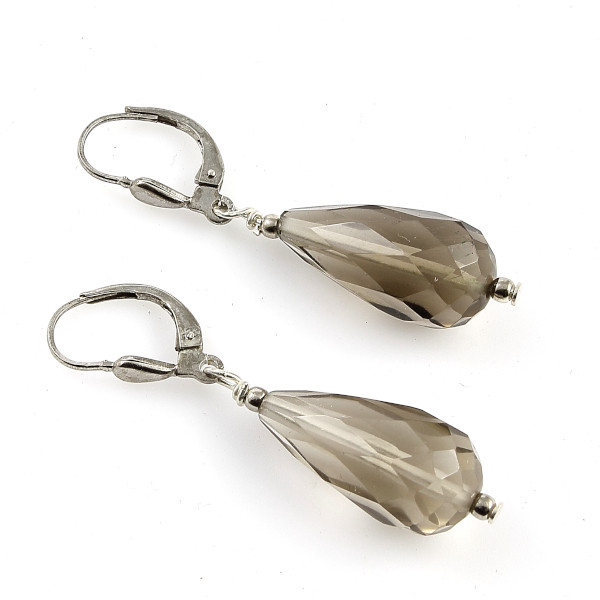 Fazettált füstkvarc csepp fülbevaló ródiumozott beakasztóval