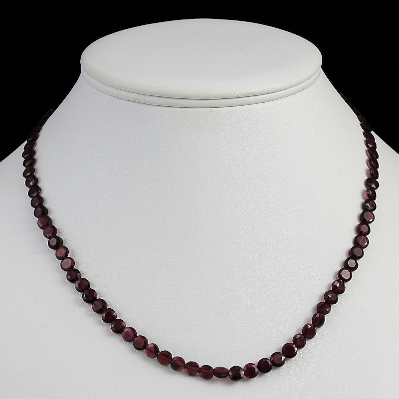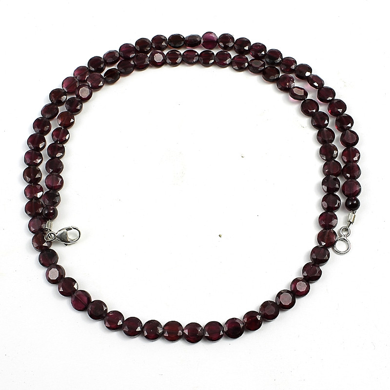Gránát nyaklánc fazettált lencse formájú kövekből zárral