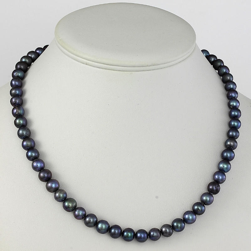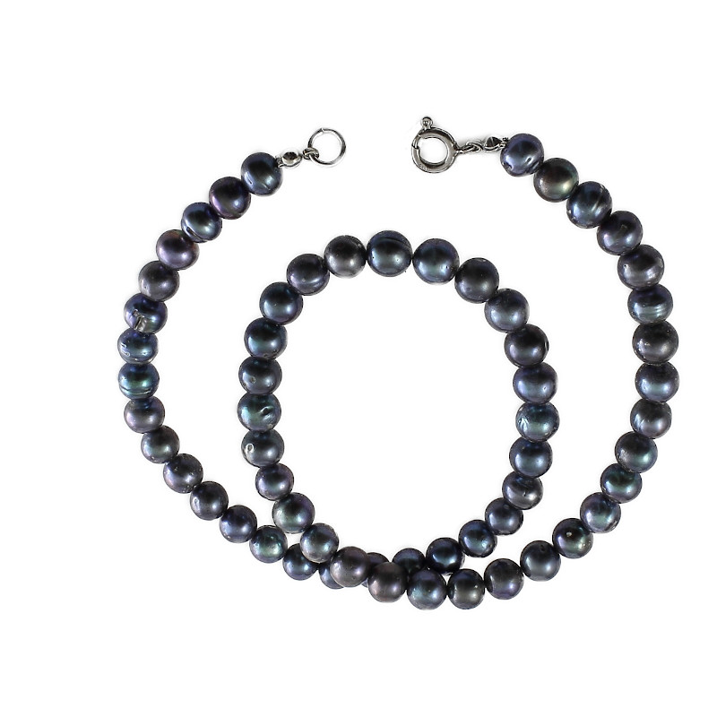 Tahiti gyöngy utánzat: színezett édesvízi gyöngyből készített nyaklánc ródiumozott zárral