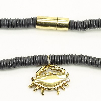 • Köves ásványi ékszer matt hematit nyaklánc rák medállal