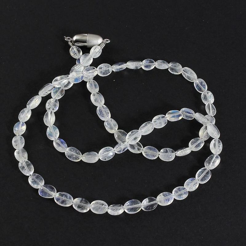 Matt és átlátszó ovális holdkövekből készült nyaklánc ovális fényes/matt mágneszárral