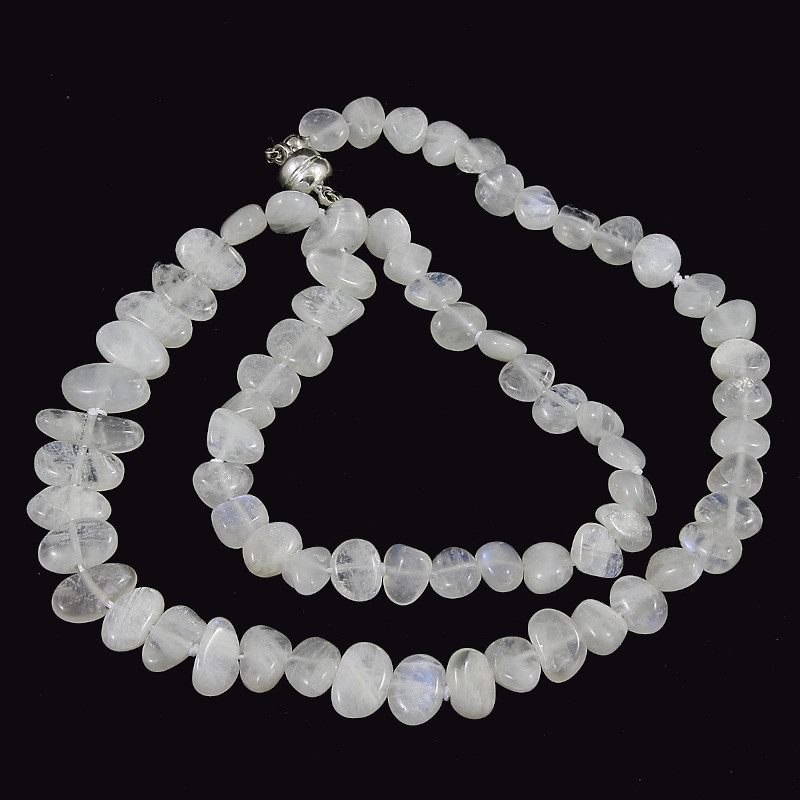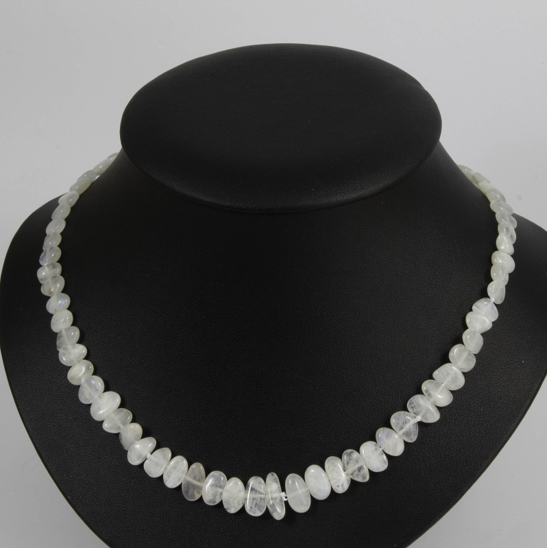 Nyaklánc lapos ovális holdkő kavicsokból, nem mágneszárral