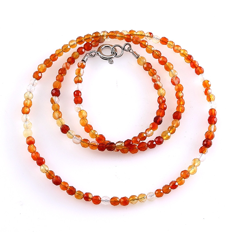 Micsoda minőség ! A fehér, sárga, narancs sokféle árnyalataiban szikráznak ezek a fazettált karneol golyók - ünnepi viselet őszre, 45cm