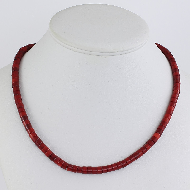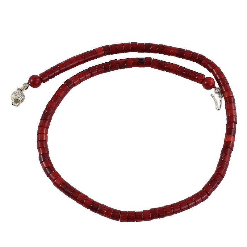 • Festett korall hernyó nyaklánc csíkos ezüst zárral