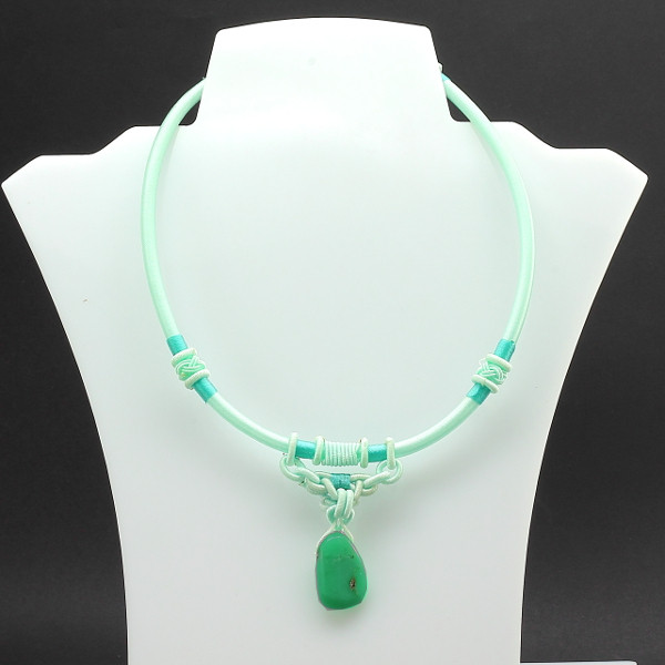 Krizopráz világoskék selyem pánton, fém mentes nyaklánc