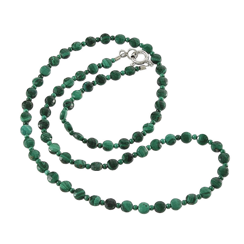 Köves ásványi ékszer Malahit lencsék és golyók nyaklánc