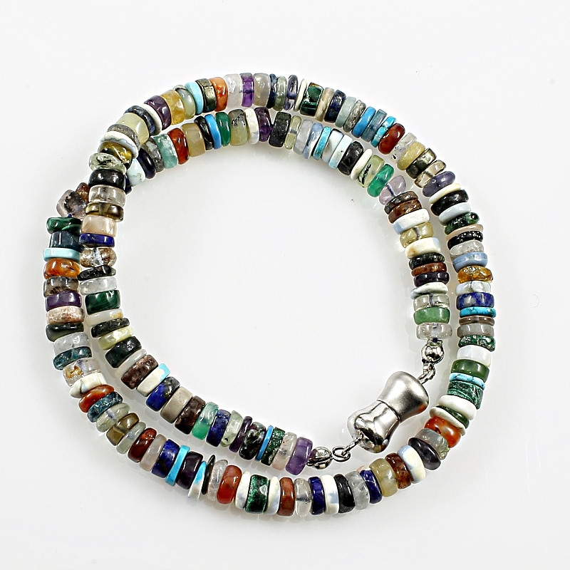 Vegyes mix (több mint 30féle) vékonyra csiszolt drágakő korongokból álló dupla karkötő, erős mágneszárral… nemesen egyszerű a hétköznapokra 41cm 30g