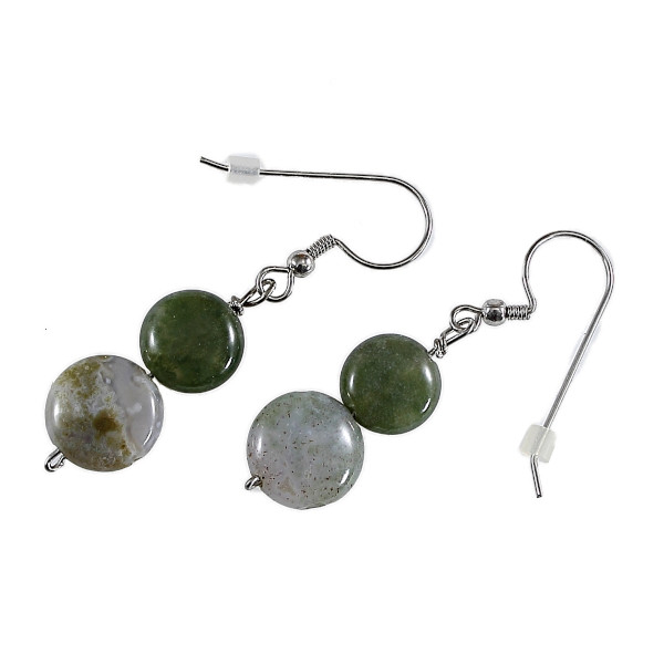2-2 mohaachát korongból készült fülbevaló ródiumozott függesztővel
