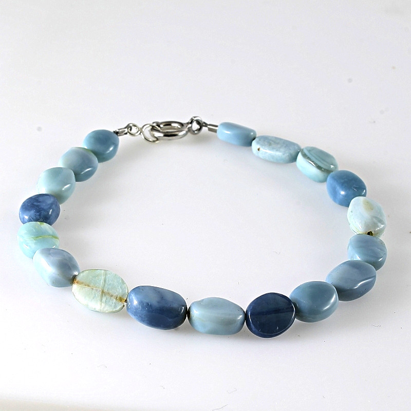 Ovális kék opál amorf kavicsokból készült karkötő ródiumozott zárral