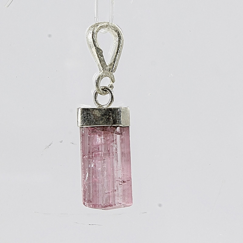 Köves ásványi ékszer Turmalin vil.rózsaszín féllapos kristály medál