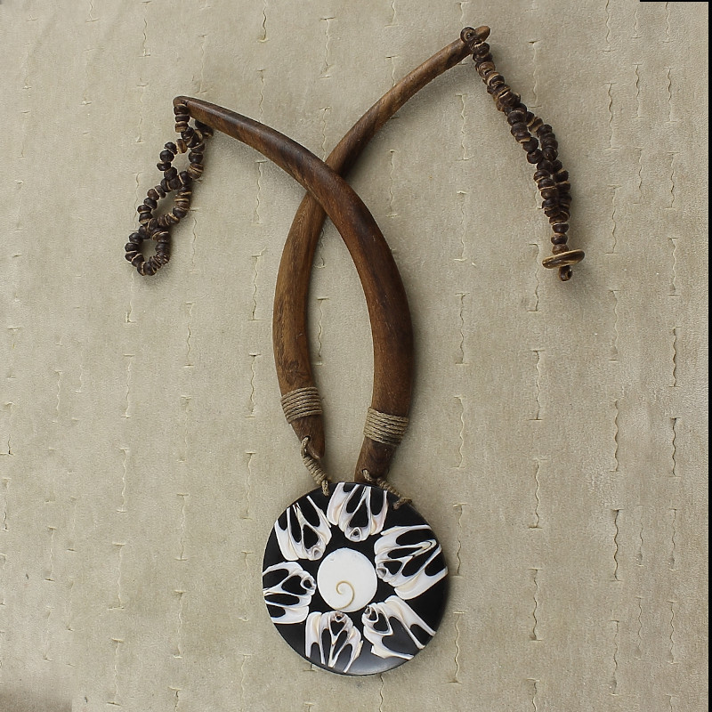 Seychelles szigeteki skanzenben, helyiek által készített csoda nyaklánc a szigeten található természetes anyagok, kagylókfelhasználásával igazi unikum , abszolút kézimunka, egyedi példányok