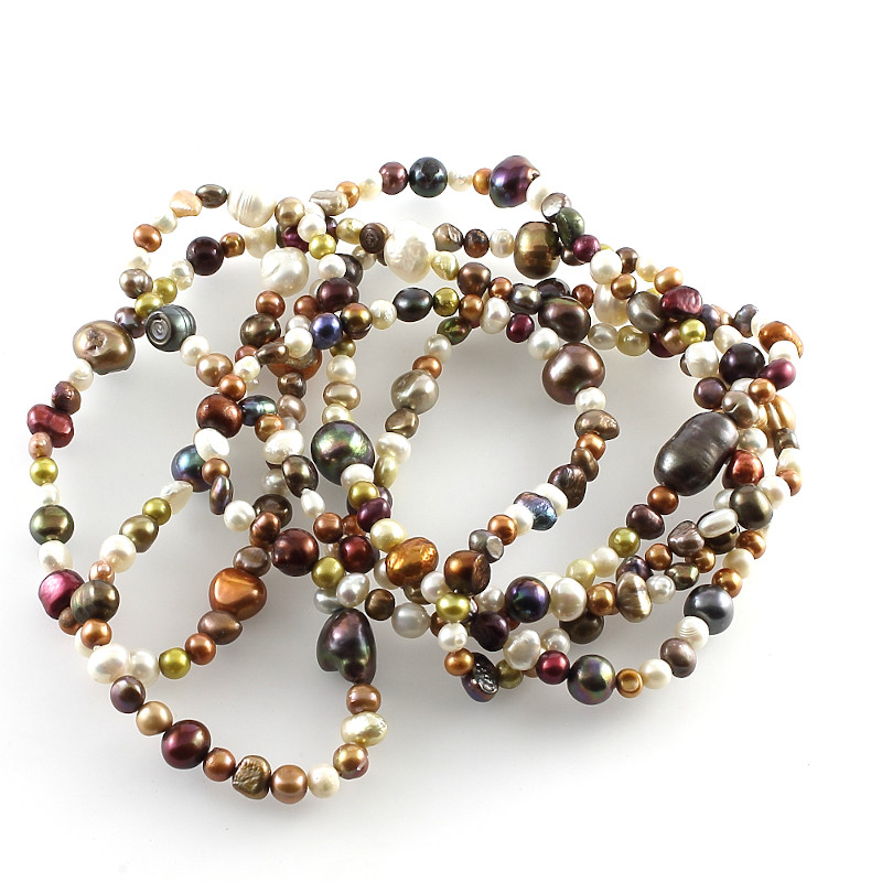 Csodás, meleg föld-színekre (festett) édesvizi tenyésztett gyöngyök harmónikus elrendezésben, hosszú így 2sorost is csinálhatsz belőle