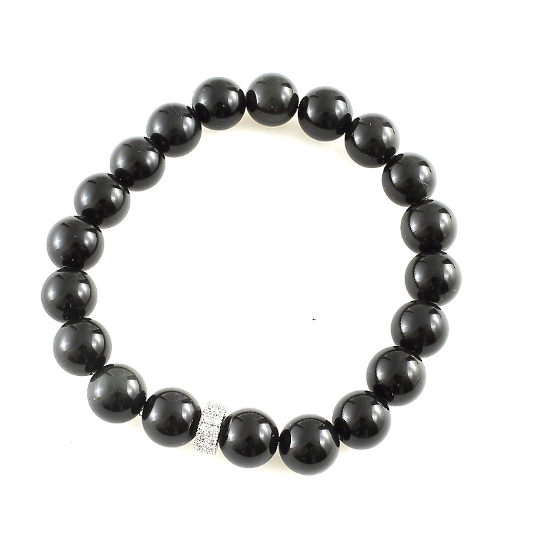 Szivárványos obszidián karkötő, elasztikus. 10 mm-es golyók köves hengerdísszel. Ez a női karkötő, amelynek létezik párja férfiak részére. Keresd a BRA8720-et