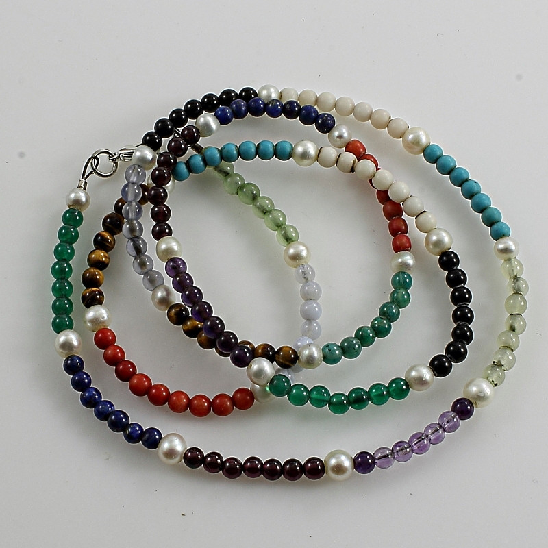 Vidám tarka-barka nyaklánc különféle ásványi drágakövekből, gyöggyökkel szekcionáltan